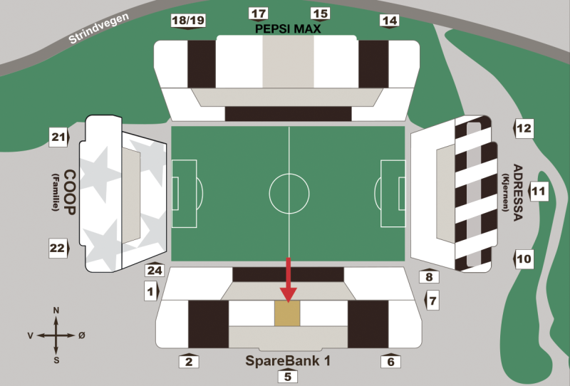 - Lerkendals beste plasser midt på øvre langside på SpareBank 1-tribunen
